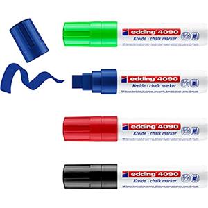 Edding 4090 Marcatore a Gesso Liquido Punta Scalpello 4-15 mm - Confezione da 4 Colori Assortiti per Vetro e Lavagne