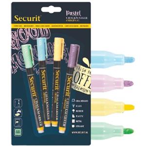 SECURIT - Set di 4 Pennarelli a Gesso Liquido Assortiti Pastello - Punta Fine 1-2mm per Lavagne, Vetro, Metallo e Plastica
