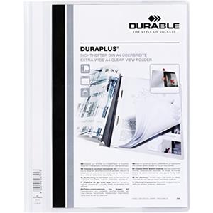 Durable Duraplus Cartellina ad Aghi A4 Bianco - Copertina Trasparente Personalizzabile con Tasca Interna - Confezione da 25