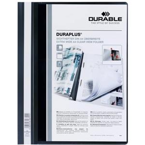 Durable Duraplus Cartellina ad Aghi A4 Nero - Copertina Trasparente Personalizzabile con Tasca Interna - Confezione da 25