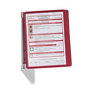 Durable Vario® Wall 5 Leggio da Parete con 5 Pannelli A4 in Metallo/Polipropilene Rosso e Cavalierini Rimovibili
