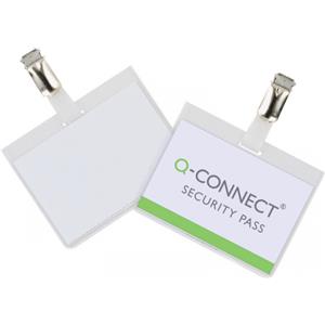 Q-Connect Portabadge in PVC Trasparente 90x60 mm con Clip - Confezione da 25 Pezzi - Chiusura Superiore