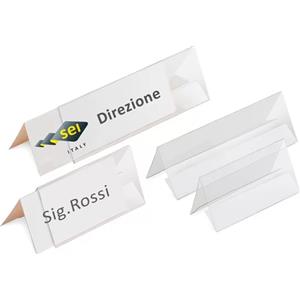 SEI ROTA Portanome da Tavolo Prisma 10x5 cm - Conf. 10 Pezzi in PVC Rigido con Etichette Stampabili