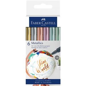 Faber-Castell 160706 - Pennarello Metallics con punta in fibra, larghezza tratto 1,5 mm, set da 6 colori assortiti (oro, argento, bronzo, viola, blu, verde), adatto a molte superfici