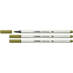 STABILO Pen 68 brush - Pennarello a punta a pennello M 1 mm verde muschio - Ideale per hand lettering e tecniche acquarello