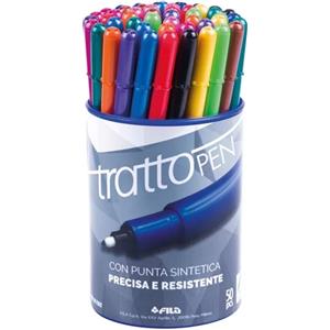 TRATTO Pen - Pennarello a punta sintetica indeformabile, inchiostro a base d'acqua, tratto 0,5 mm, barattolo da 50 colori assortiti