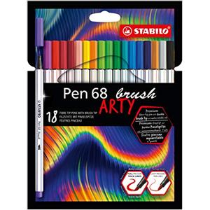 STABILO Pen 68 brush - Pennarello Premium con punta a pennello - ARTY - Astuccio da 18 colori assortiti
