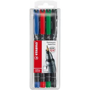 STABILO OHPen Universal Marcatore Permanente Superfine 0,4 mm - Astuccio da 4 Colori Assortiti