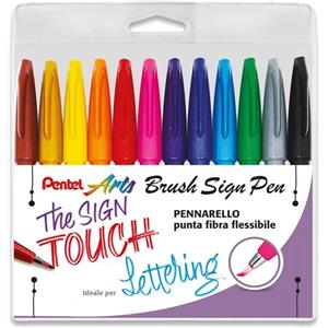 Pentel Pennarello Brush Sign Pen - 12 colori assortiti con punta flessibile per calligrafia e illustrazione