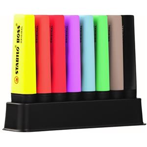 Stabilo Boss® Original Set di 8 Evidenziatori - Ampiezza 2-5 mm, Inchiostro a Base d'Acqua, Tecnologia Anti-Dry-Out
