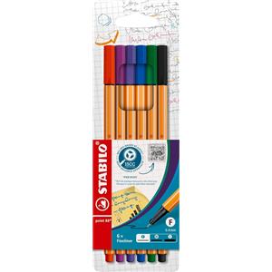 Stabilo Point 88 Fineliner 0,4 mm - Astuccio da 6 Colori Assortiti con Punta Rinforzata