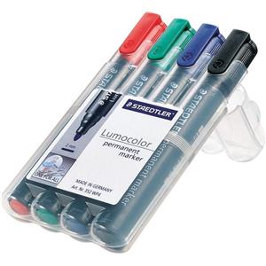 Staedtler Lumocolor 318 WP4 Marcatore Permanente Punta Fine 0,6 mm Assortiti (Nero, Blu, Verde, Rosso) - Astuccio da 4 Pezzi in Scuola e Cancelleria