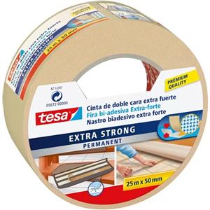 Tesa Nastro Biadesivo Extra Forte 50 mm x 25 m - Bianco, Ideale per Pavimenti e Scale, Resistente all'Umidità