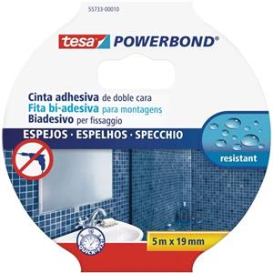 Tesa Powerbond Specchi - Nastro Biadesivo Resistente All'Umidità per Fissaggio di Specchi - 5 m x 19 mm