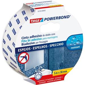TESA Nastro Biadesivo Powerbond per Specchi - 5m x 3,8cm - Forte Tenuta e Resistente all'Umidità