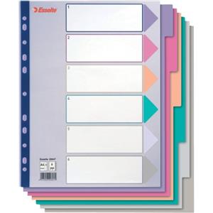 Esselte Divisori Intercalari A4 Maxi in Polipropilene Traslucido con 6 Tasti e Pagina Indice Colorata