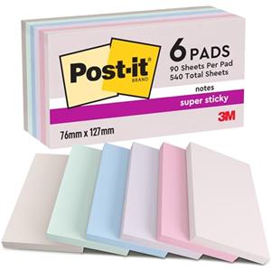 Post-it® Super Sticky Soulful - Confezione da 6 blocchetti, 90 foglietti ciascuno, colori assortiti