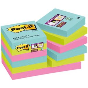 Post-it Super Sticky Playful - Blocchetti da 90 foglietti (47,6x47,6 mm) in assortimento colori: Blu, Arancio, Rosso, Giallo, Verde - Conf. 12