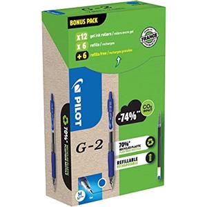 Pilot G-2 Penna Gel a Scatto Blu 0,7 mm - Green Pack 12 Penne 12 Ricariche
