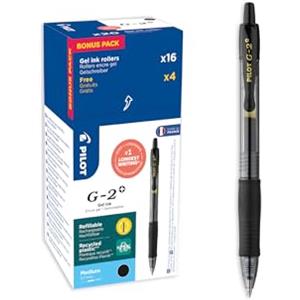 Pilot G-2 Penna Gel a Scatto 0,7 mm Nero - Confezione da 20 Pezzi con Grip Ergonomico e Inchiostro Ricaricabile