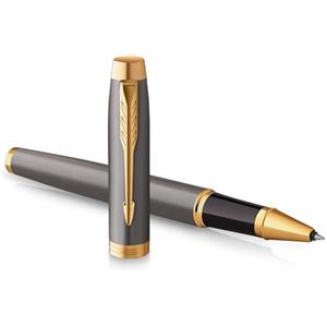 Parker IM Penna Roller Elegante Grigia con Punta Fine e Dettagli Dorati - Ricarica Nero Inclusa
