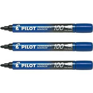 Pilot Marcatore Permanente Markers 100 Blu - Punta Tonda 4,5 mm - Multisuperficie - Conf. 12 Pezzi