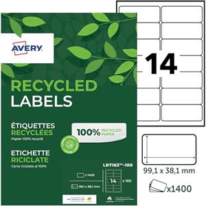 Avery LR7163-100 Etichette Adesive in Carta Riciclata Bianco 99,1 x 38,1 mm - 1400 pz - Adesivo Permanente - Compatibili con Stampanti Laser