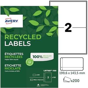 Avery LR7168-100 Etichette Autoadesive in Carta Riciclata Bianco 199,6 x 143,5 mm - 200 pz - Finitura JamFREE™