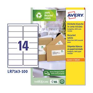 Avery LR7163-100 Etichette Adesive in Carta Riciclata Bianco 99,1 x 38,1 mm - 1400 pz - Adesivo Permanente - Compatibili con Stampanti Laser