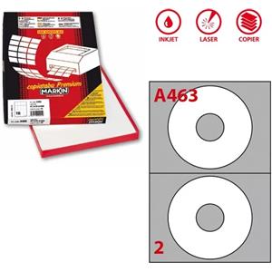 Markin Etichette Adesive A/463 Bianche per CD - 100 Fogli, Diametro 117,5 mm, Foro 41 mm, 2 Etichette per Foglio
