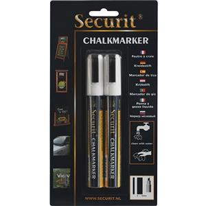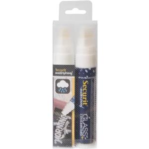 Securit Pennarelli a Gesso Liquido Waterproof - Set da 2 Pezzi, Colore Bianco, Punta Grande 7-15mm, Resistenti all'Acqua per Lavagne e Superfici Non Porose