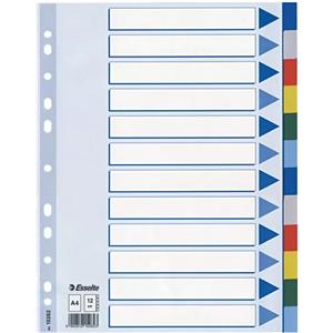 Esselte Divisori Intercalari in Polipropilene A4 - 12 Tasti Multicolore con Pagina Indice Rinforzata