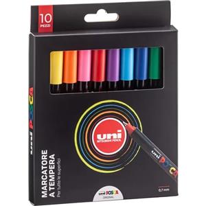 Uni Posca Set Completo di 10 Pennarelli Extra-Fini 0.7 mm - Colori Assortiti per Creatività e Decorazione