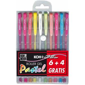 Koh-I-Noor Penna Gel 0,7mm Colori Pastello Assortiti - Astuccio da 10 pz con Fusto Trasparente e Puntale in Metallo
