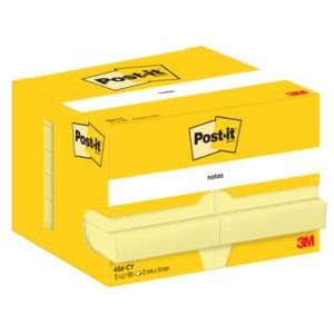 Post-it Foglietti Adesivi Riposizionabili Giallo Canary - Confezione da 12 blocchetti, 100 Fogli per blocco, Dimensioni 51 mm x 76 mm