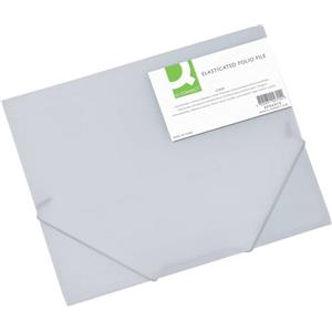 Q-Connect Cartellina A4 a 3 lembi in Polipropilene Traslucido con Dorso Espandibile e 2 Elastici Angolari - Trasparente