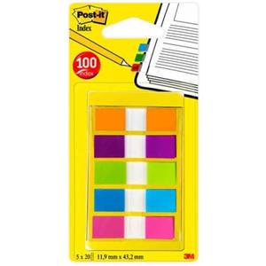 Post-it® Index Mini Segnapagina Autoadesivi - 100 Fogli, 11,9 mm x 43,2 mm, Colori Assortiti (Giallo, Blu, Verde, Arancione, Rosa)