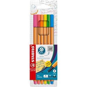 STABILO Point 88 Penna Fineliner 0,4 mm Astuccio 6 Colori Neon Assortiti