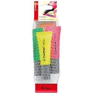 STABILO Neon Evidenziatore - Assortimento 4 Colori (Giallo, Verde, Arancione, Rosa) - Punta a Scalpello - Tratto 2-5 mm - Inchiostro a Base d'Acqua