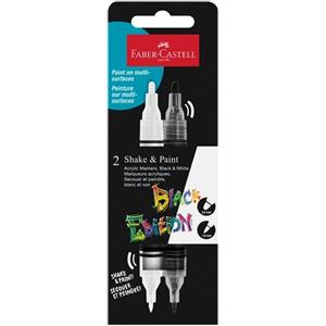 FABER-CASTELL Pennarello acrilico Shake&Paint Black Edition - 2 penne con punte rotonde da 3 mm e 1 mm, inchiostro a base d'acqua altamente pigmentato