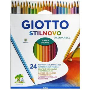 Giotto Stilnovo Acquarell - Astuccio 24 Pastelli Acquerellabili, Mina 3,3 mm, Lunghezza 18 cm, Colori Assortiti