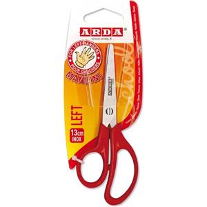 Arda Forbici Left per Mancini 13 cm - Lame in Acciaio INOX a Molatura Speculare, Impugnatura in ABS, Colore Rosso