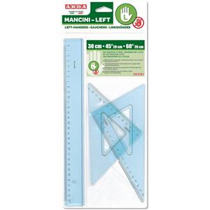 Arda Set Disegno per Mancini - 3 Pezzi: Righello 30 cm e Squadre 45° e 60° in Plastica