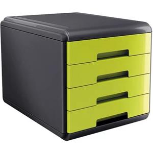 ARDA Cassettiera MyDesk 4 Cassetti Grigio/Verde in Polistirolo con Scorrimento Silenziato e Blocco a Fine Corsa