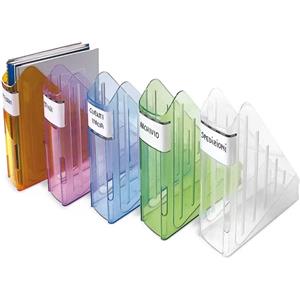 ARDA Portariviste Classic - Polistirolo Antiurto Cristallo - 7,5x27x29,5 cm - Profondità Maggiorata con Portaetichetta in Scuola e Cancelleria