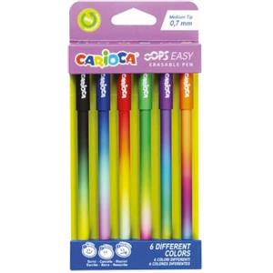 Carioca Oops Easy - Penne cancellabili assortite, punta media 0,7 mm, confezione da 6 pz con inchiostro termosensibile