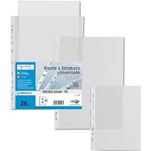 Sei Rota Buste Forate Ercole in PVC Trasparente 22x30 cm - Spessore 11/100 mm - Confezione da 25 Pezzi