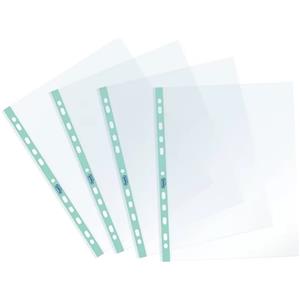 Favorit Buste Forate Pastel A4 - 22 x 30 cm - Lisce e Trasparenti - Banda Colorata Azzurra - Confezione da 25 Pezzi