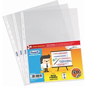 Favorit Buste a Foratura Universale 22 x 30 cm in Polipropilene Buccia d'Arancia - Spessore Medio - Confezione da 100 Pezzi