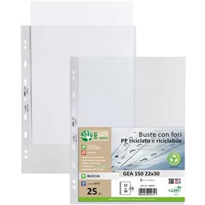Sei Rota Buste forate Gea 150 - PP riciclato trasparente 22x30 cm - alto spessore - confezione da 50 pezzi in Scuola e Cancelleria